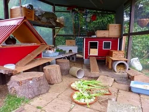 Por eso, estos conejos deben mantenerse en un recinto con techo y protegido de la humedad por varios lados. Las zonas de paseo al aire libre no suponen un problema, incluso con nieve o lluvia, siempre que los animales puedan regresar en cualquier momento al área cubierta.