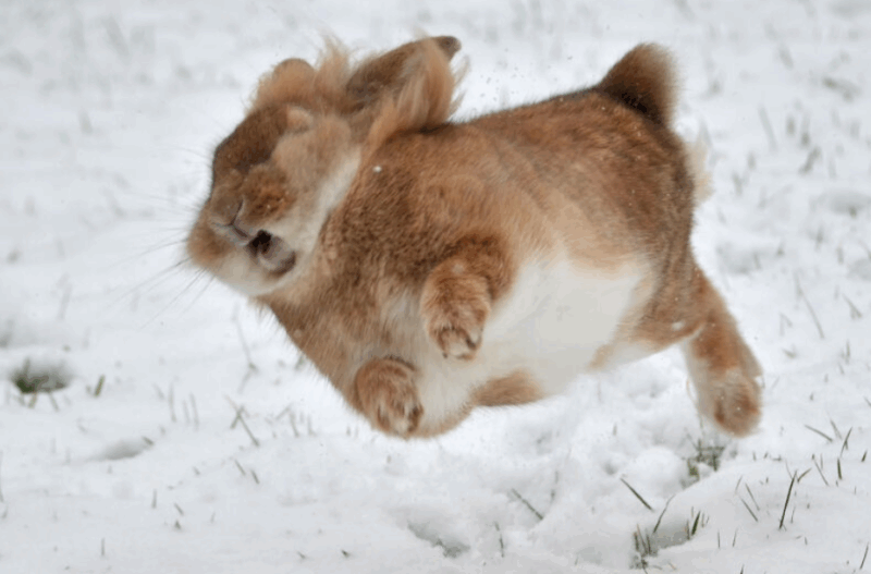 A los conejos les encanta correr y moverse en la nieve…