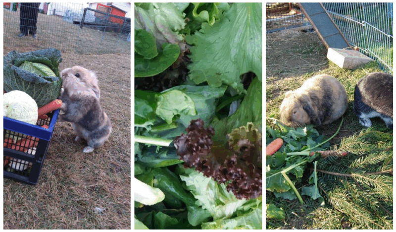 Alimentación suficiente, energética y fresca: En otoño los conejos empiezan a acumular grasa para el invierno, que los protege de las temperaturas bajo cero. Por eso conviene preparar la dieta invernal en cuanto caen las primeras hojas. Incluso en invierno es obligatorio dar mucho alimento fresco. Como las bajas temperaturas lo congelan, hay que ofrecer también suficientes componentes secos (heno, forraje seco) y elegir verduras resistentes a las heladas (sobre todo coles de hoja, poca fruta). Otros alimentos frescos como endivias o hierbas de cocina no se consumen con heladas y solo deben ofrecerse en pequeñas cantidades (para consumo inmediato) o junto a una fuente de calor. Por ello, en invierno es importante alimentar con la mayor frecuencia posible.