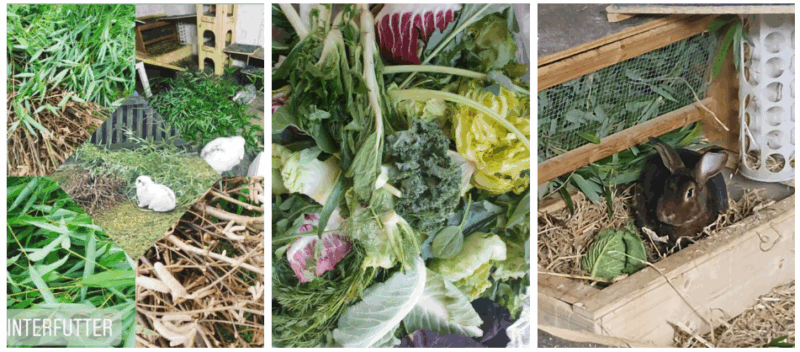 Las ramas de algunos árboles o plantas, como las de las moras, pueden encontrarse incluso en invierno, y a los conejos les encanta comerlas. El bambú y las ramas de abeto también se mantienen verdes durante esta época y son muy apreciadas. La hierba y las plantas silvestres pueden ofrecerse incluso congeladas, siempre que se hayan recogido frescas.