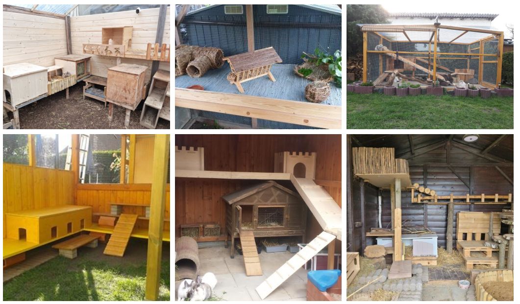 El tamaño mínimo del recinto depende de cuánto tiempo puedan los conejos moverse libremente fuera de él (por ejemplo, en el jardín o en una zona delimitada). Aun así, deberían disponer siempre de varios metros cuadrados de superficie.